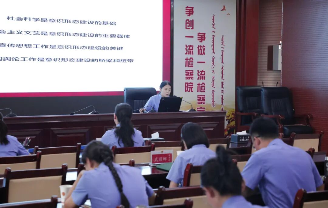 为深入学习贯彻习近平新时代中国特色社会主义思想,扎实做好新时代意识形态工作,进一步提高检察人员对意识形态工作的认识,8月15日,乌审旗人民检察院组织开展意识形态专题学习,在家院领导,全体检察人员参加。 本次学习以《坚定不移,做好新时代意识形态工作》为题,围绕“什么是意识形态、如何做好意识形态工作、如何防范网络舆情的发生、网络舆情的应对”四个方面,结合工作实际,融入学习体会,与检察人员进行了分享。 通过此次学习,让全体检察人员对新时代抓好意识形态工作的极端重要性有了更加深刻的认识,进一步强化责任意识和风险意识,持续加强理论学习,把意识形态工作要求贯彻落实到各项检察工作中,以高度的政治自觉、法治自觉、检察自觉为大局服务,为人民司法。 下一步,乌审旗人民检察院将不断深入学习贯彻习近平文化思想、习近平总书记关于意识形态工作的重要论述和指示批示精神,深刻领会“两个确立”的决定性意义,增强“四个意识”、坚定“四个自信”、做到“两个维护”。不断完善宣传内容,突出亮点特色,注重实践创新,围绕司法办案、队伍建设中的典型案例和人物故事,针对性做好新闻创作工作,认真学习借鉴,不断提高检察新闻宣传作品的质量和水平。